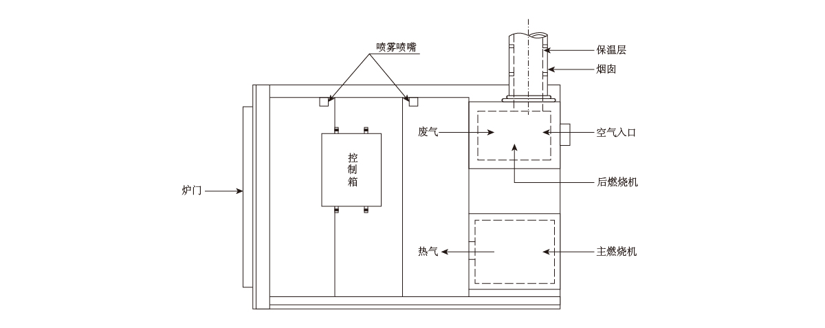 火焰在后部燃烧室燃烧,仅热气进入剥漆炉。